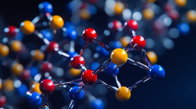 Close up shot of Human genome analysis DNA molecular structure on a dark blue background