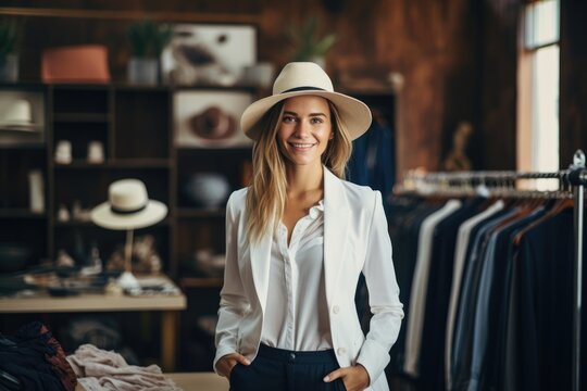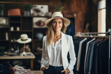 Young stylish woman working in fashion industryas designer, personal shopper, shop assistant. Small business concept