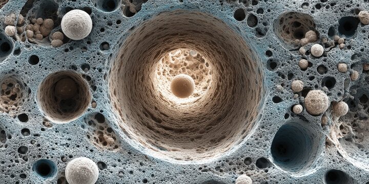 A detailed close-up of a weathered rock surface, showcasing intricate textures and patterns