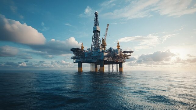 Drilling rig for oil - energy machinery, petroleum extraction, offshore structure, industrial equipment, natural resource production, mechanical operation, oilfield infrastructure, resource drilling .