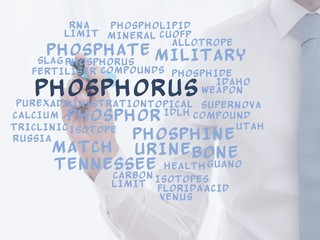 Phosphin. Arzt im Kittel zeigt mit dem Finger auf ein Suchfeld. Der Begriff Phosphin steht im Fokus. Symbol für Krankheit, Gesundheit, Medizin