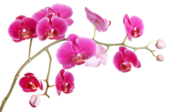 The branch of orchids on a white background