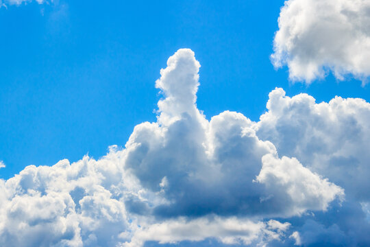 Cloud of unusual shape in the form of a phallus or fuck you on the background of blue sky. Funny sign in the sky without photomontage