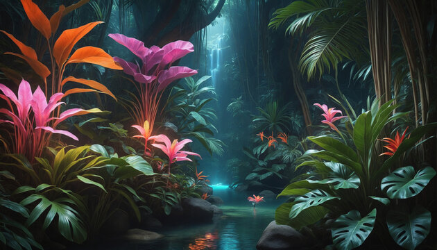 Vibrant Neon Jungle Foliage in a Surreal Dreamland