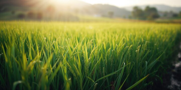 Young rice plants during early growth phase in the planting season