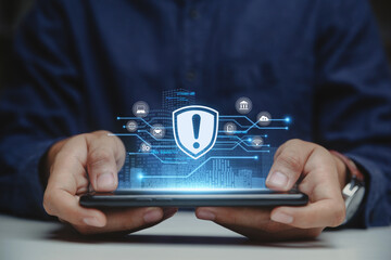 Cybersecurity warning with digital lock icon