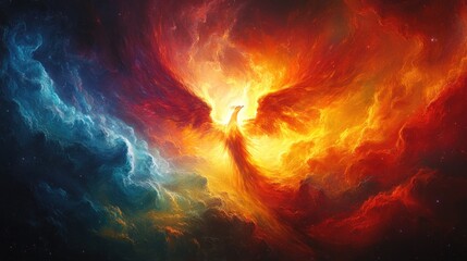 Fiery Phoenix Rising Cosmic Nebula Rebirth