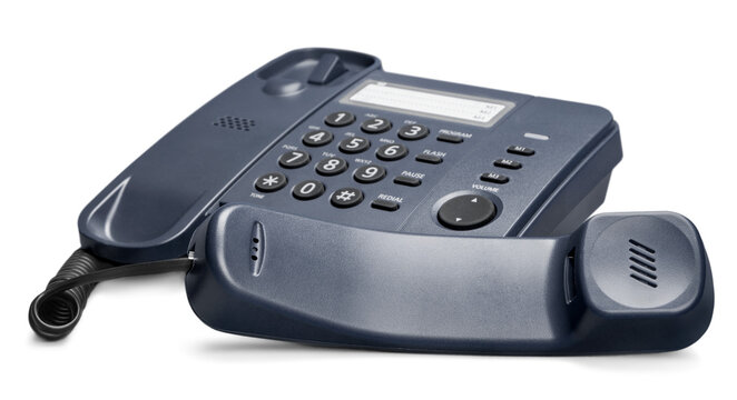 Telephone with VOIP isolated on white background. customer service support, call center concept. Modern VoIP or IP phone. Communication support, call center and customer service help desk
