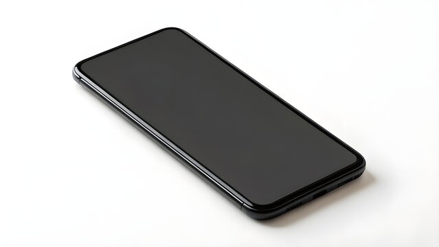 Set of Isometric smartphone mockups on white background. New modern frameless smartphone mockup with white screen lying on surface. Isolated on white background with mirror reflection
