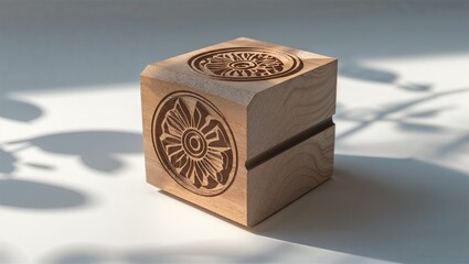 Photorealistic sequence, using a rubber stamp on paper, ink impression briefly animates into a tiny, fleeting scene, stamp handle has surreal, polished petrified wood texture