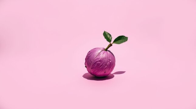 Cabbage rose, a type known for its densely packed, globular blooms, resemble a cabbage head. The image physically merges the two items that share a common name in a visually striking, pop-art style