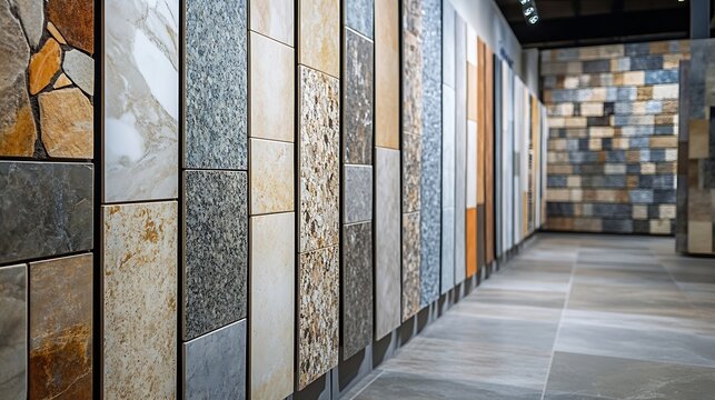 Kitchen bathroom tiles showroom display of new tiling option for floors and walls for home building improvement works : Generative AI
