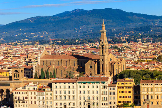 View of Basilica of Santa Croce from Piazzale Michelangelo in Florence, Italy