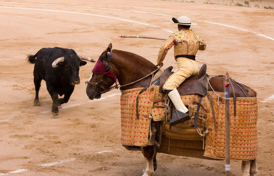 The horseback picador and toro, Madrid , Spain