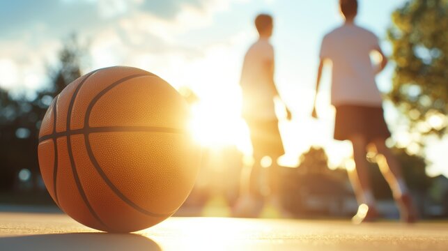 Basketball Teenagers playing a pickup game of basketball at a neighborhood court, having fun.