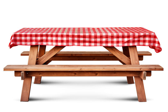 Wooden picnic table with red checkered cloth. Vector illustration isolated on white background. Ai Generated Images