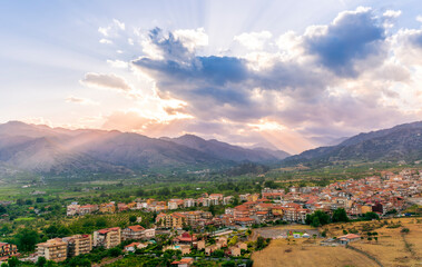 Picturesque landscape in umbria with sunlit buildings and rolling hills