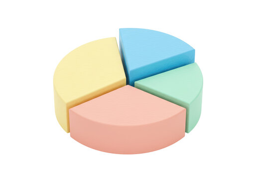 Colorful pie chart isolated on transparent background, 3D render of business data visualization