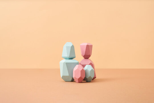 Balanced colored wooden pieces as family