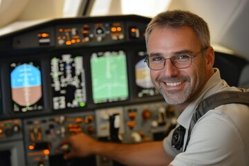 Young boy inspired by pilot experiences the cockpit environment during an adventurous encounter with aviation and flight instruments