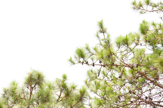 Green Christmas pine twig in an arch arrangement isolated on white or transparent background