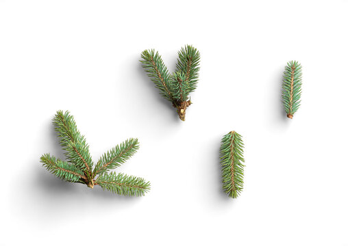 Set of Fir Sprigs with Green Needles for Winter Decor