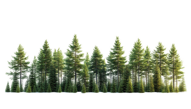 Pine Tree Forest Group with Transparent Evergreen Nature