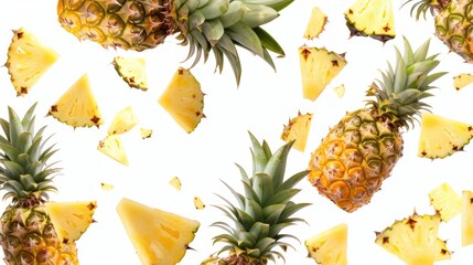 Creative pineapple concept, falling pineapple with pineapple pieces.
