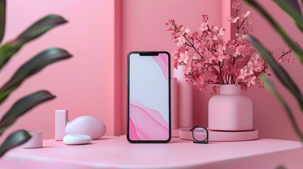 Minimalist Pink Aesthetic Home Decor with Speaker and Orb