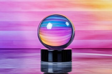 A pink color gradient iridescent background features an abstract rainbow effect with pastel hues.