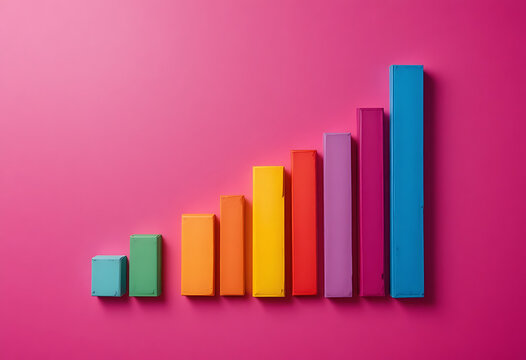 Colorful bar graph on a wooden platform against a pastel pink background (1)