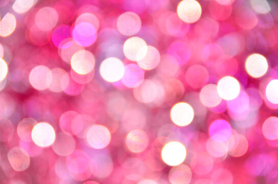Abstract texture of pink bokeh christmas lights in celebration. Sparkling product background or blurred background with nature glowing sun light flare. blurred and defocused spring concept for design.