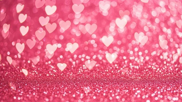 Abstract pink bokeh background with mini heart symbols in light pink and white tones for poster