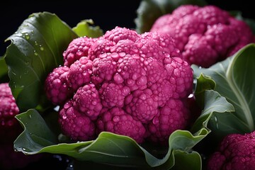 Close-up of the pink cauliflower on the table. Healthy food, and vegetables.