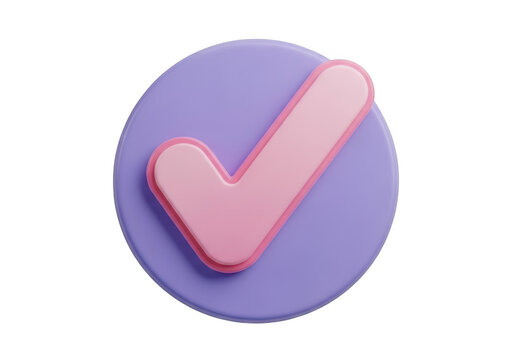 A glossy pink check mark symbol on a pastel background, representing approval and success.
