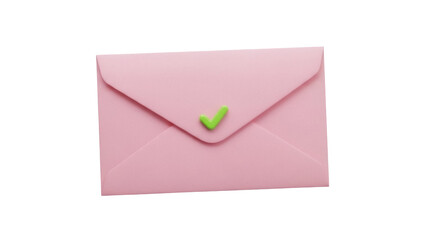 Isolated pink envelope with green checkmark indicates message approved, delivered, secure