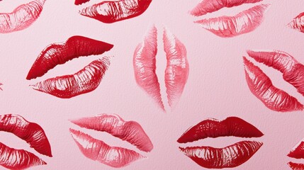 Red lipstick kiss marks on pink background