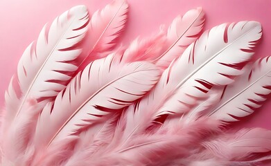 Beautiful abstract colorful white and pink feathers on white background and soft white red feather texture on pink pattern, pink background