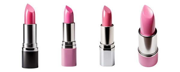 Collection set of pink polish lipsticks isolated on transparent background