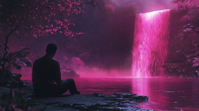 Serene Pink Waterfall Landscape- Dreamy AI Generated Nature Scene