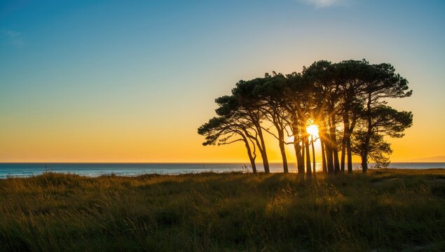 Sunset over pine forest in Maremma, illustrating natural landscape and dusk lighting