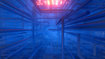Three dimensional render of heavy industrial pipeline