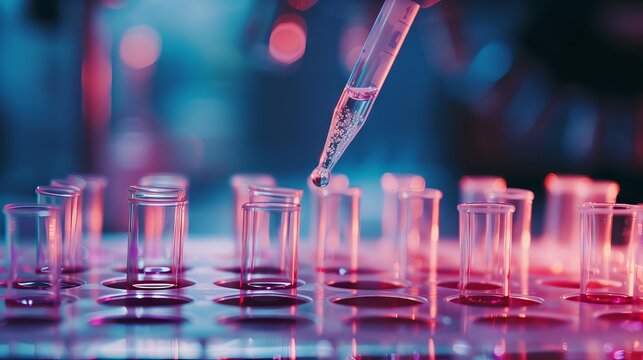 Scientist Conducts Lab Experiment Using Pipette to Analyze Samples in a Modern Laboratory Setting