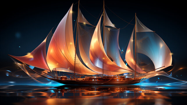 Majestic sailing ship illuminated by moonlight on turbulent seas
