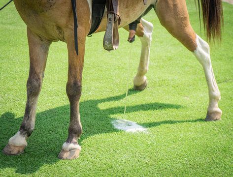Thai brown dog creates territory by peeing on the glass at outdoor field.