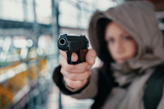 hand gun pistole in a man hand