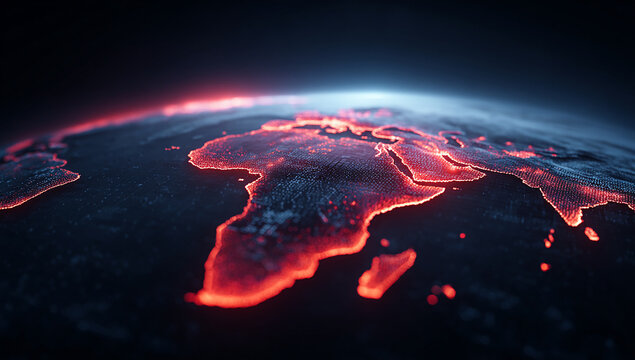 Fiery Digital Representation Of Africa On The Earth