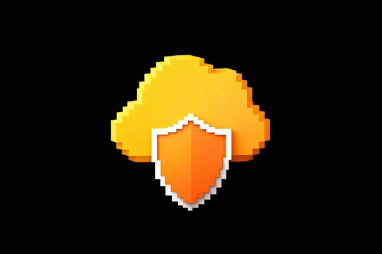 Pixelated digital shield symbolizing cybersecurity and data protection