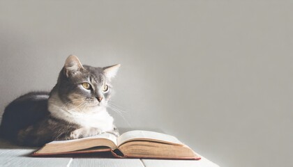 cat reading book, 16:9 widescreen backdrop / wallpaper