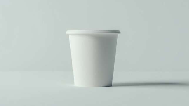 Front view of a clean, white, blank disposable paper sampling cup, isolated on a white background